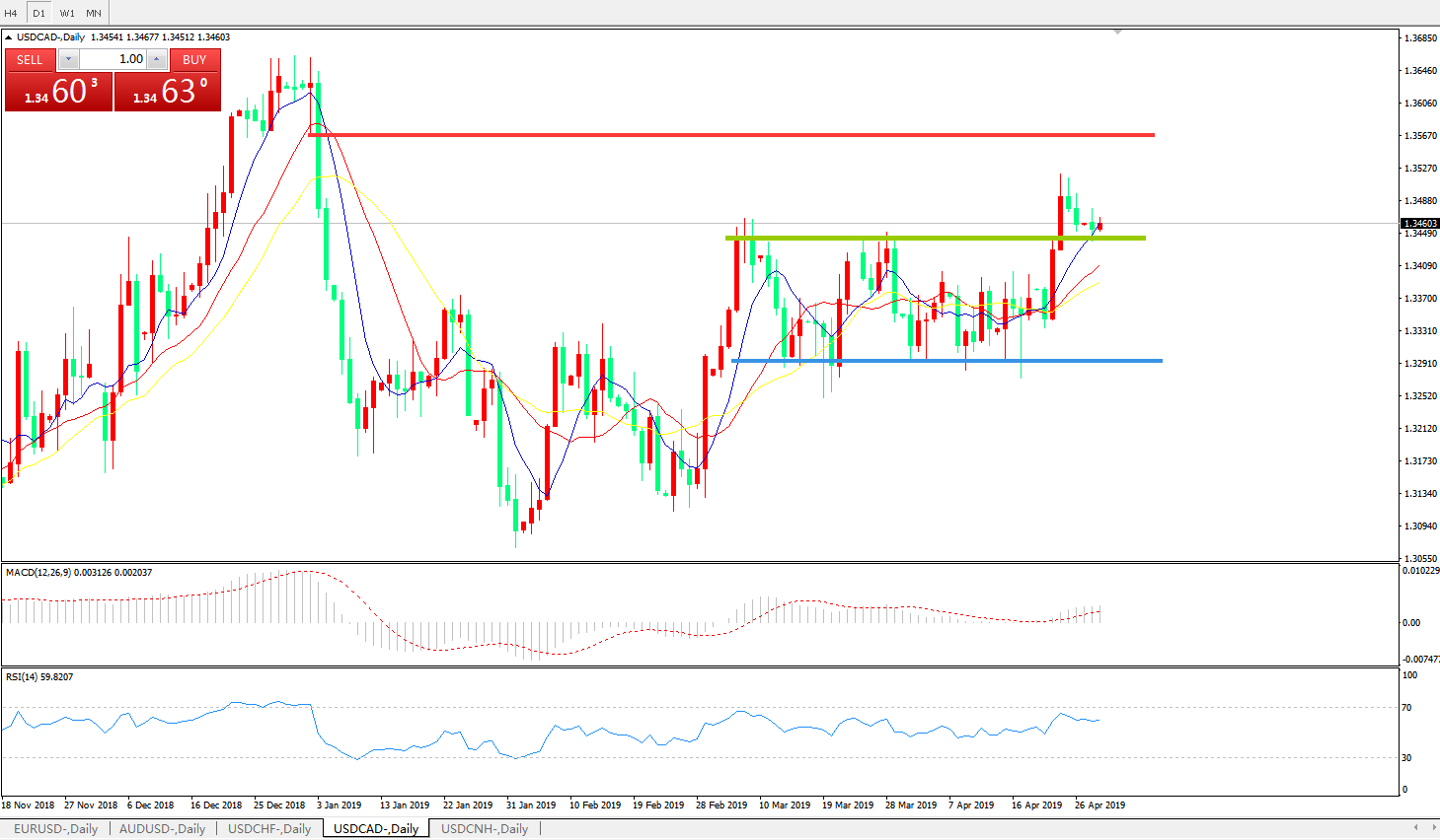 美元兑加元USDCAD    日线