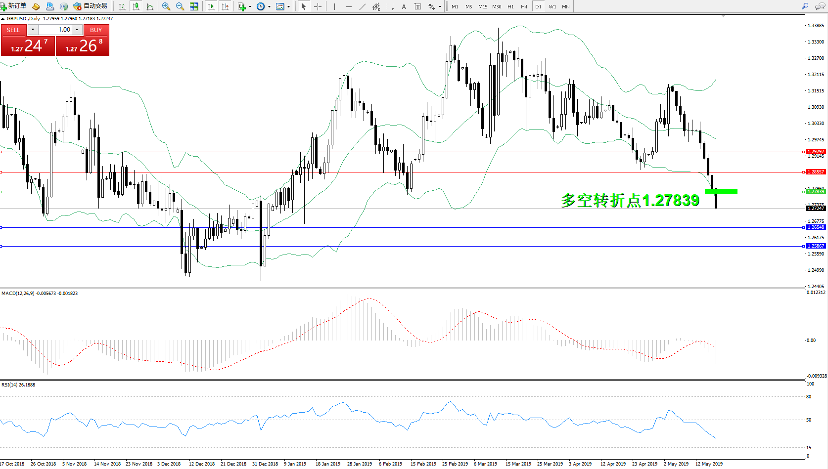 交易策略:1.27839下方看跌,目标1.265481.25867
