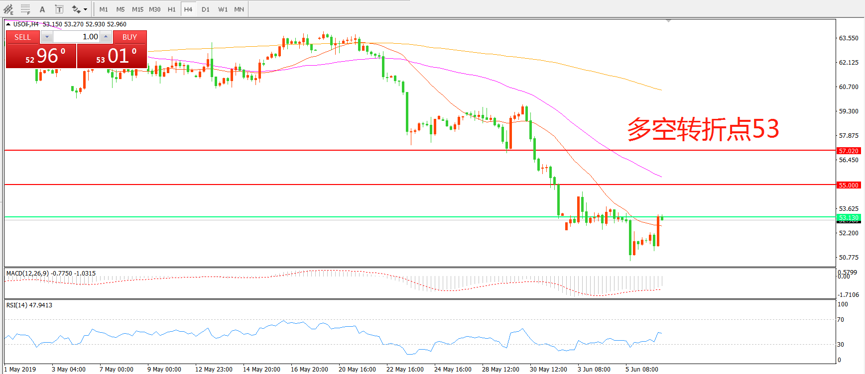 多空转折点:53.00