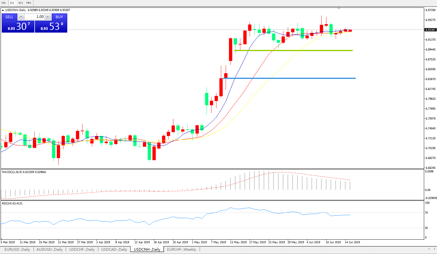 交易策略6.8880之上,看涨,目标价位为6.9600,然后为6.9800