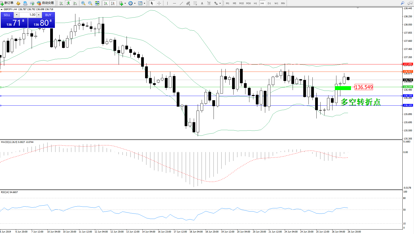 交易策略:136.549上方看涨,目标136.917137.095