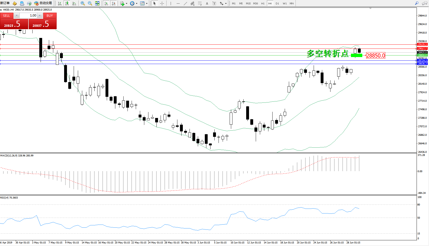 恒指HK50 ——4小时K线图显示: