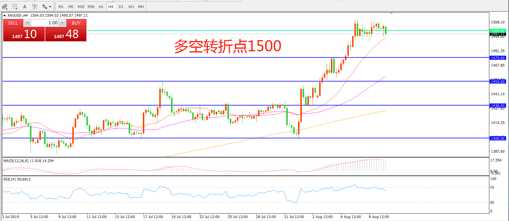 多空转折点:1500.00