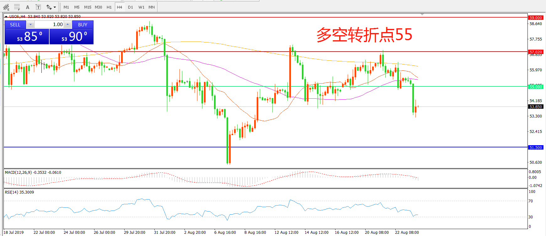 多空转折点:55.00