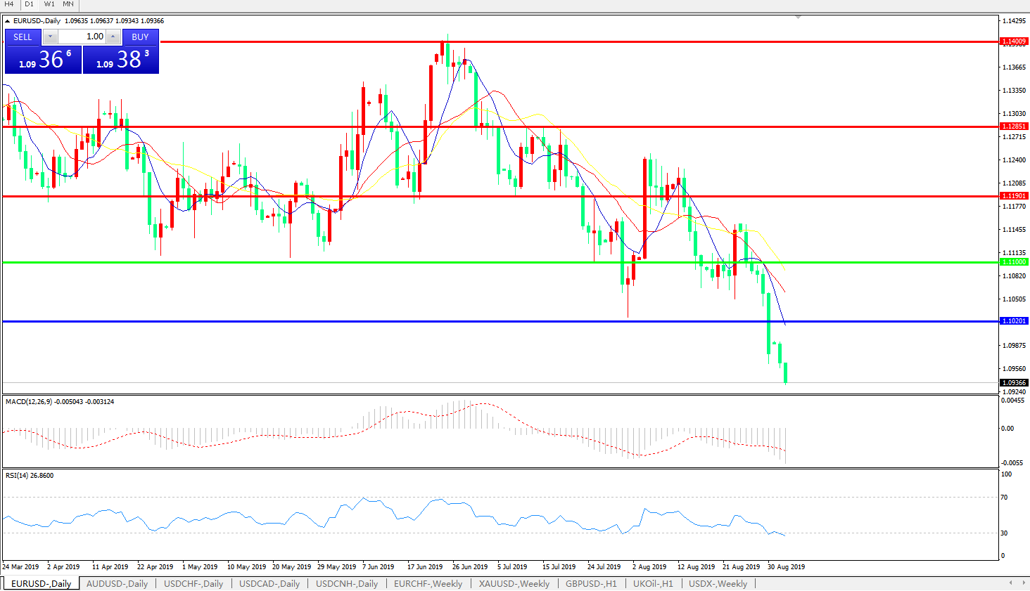 欧元兑美元EURUSD   日线: