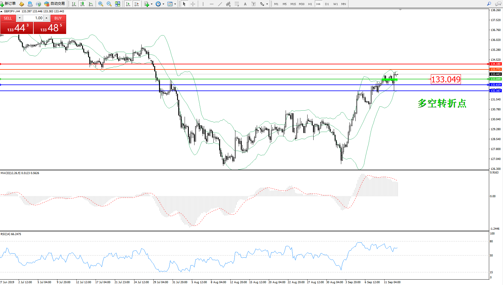 交易策略:133.049上方看涨,目标133.773、134.180