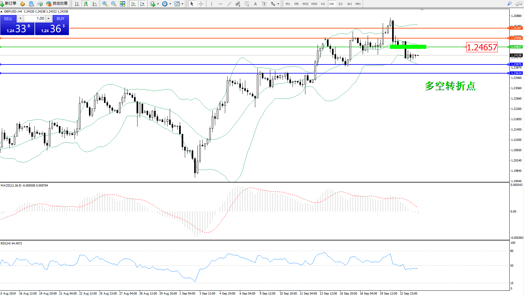 交易策略:1.24657下方看跌,目标1.23975、1.23634