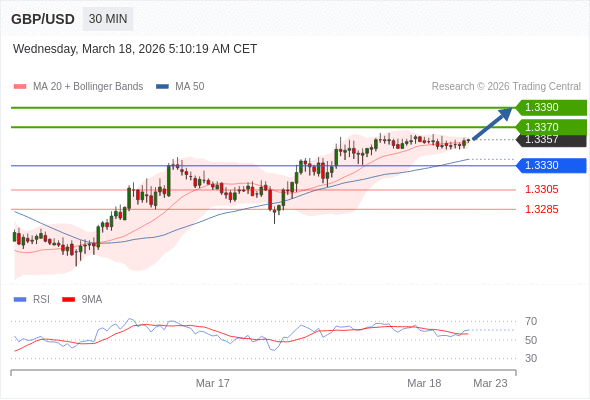 在 1.3330 之上,看涨,目标价位为 1.3370 ,然后为 1.3390 。
