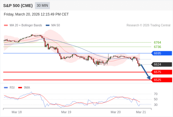 美国标普500指数期货 (M6) 当日内: 存在压力。