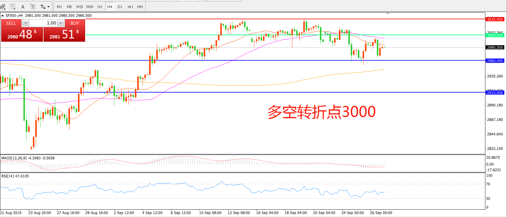 标普500 SP500 4小时图