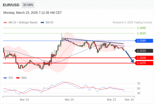 交易策略: 在 1.1580 之下,看跌,目标价位为 1.1500 ,然后为 1.1475 。