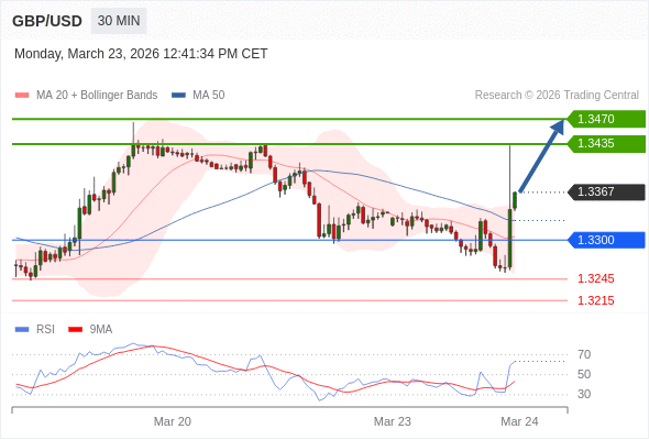 在 1.3300 之上,看涨,目标价位为 1.3435 ,然后为 1.3470 。