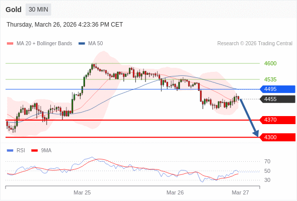 在 4495 之下,看跌,目标价位为 4370 ,然后为 4300 。