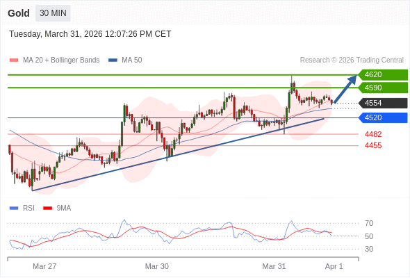在 4520 之上,看涨,目标价位为 4590 ,然后为 4620 。