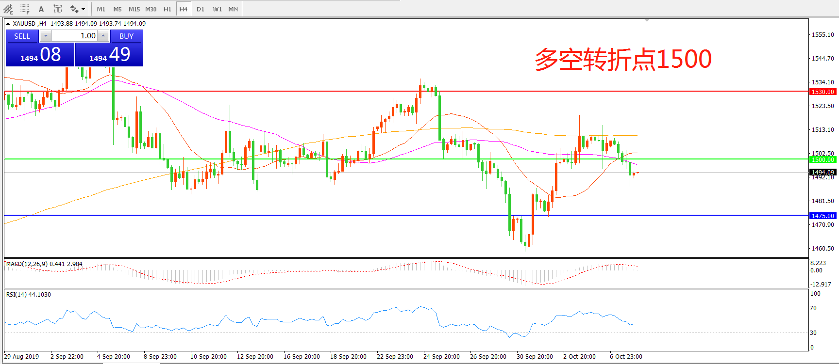 多空转折点:1500.00