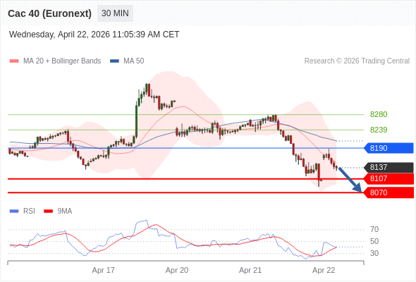 在 8190 之下,看跌,目标价位为 8107 ,然后为 8070 。
