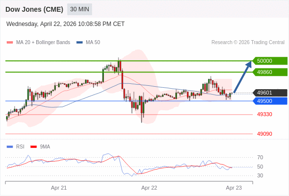 在 49500 之上,看涨,目标价位为 49860 ,然后为 50000 。