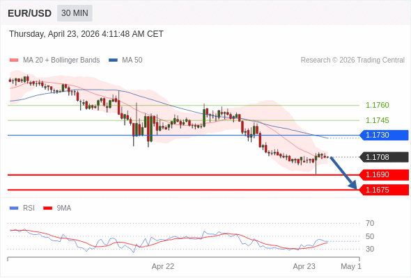 交易策略: 在 1.1730 之下,看跌,目标价位为 1.1690 ,然后为 1.1675 。