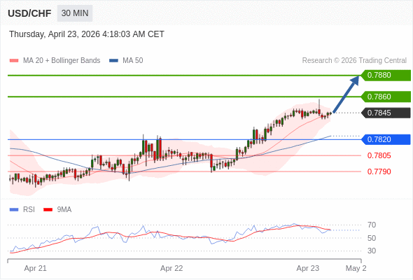 在 0.7820 之上,看涨,目标价位为 0.7860 ,然后为 0.7880 。