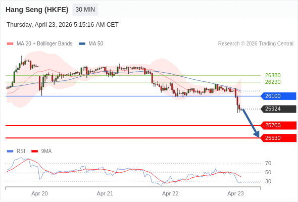 在 26100 之下,看跌,目标价位为 25700 ,然后为 25530 。