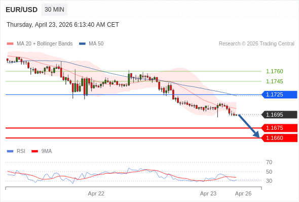 交易策略: 在 1.1725 之下,看跌,目标价位为 1.1675 ,然后为 1.1660 。
