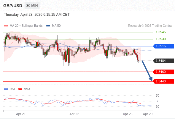 在 1.3515 之下,看跌,目标价位为 1.3460 ,然后为 1.3440 。