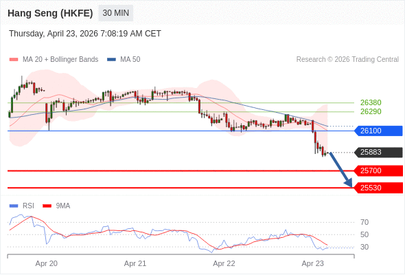 在 26100 之下,看跌,目标价位为 25700 ,然后为 25530 。