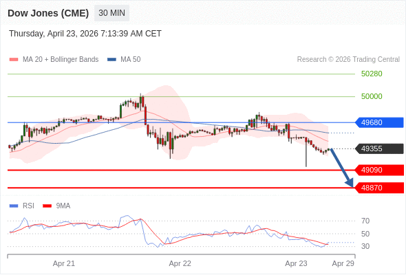 在 49680 之下,看跌,目标价位为 49090 ,然后为 48870 。