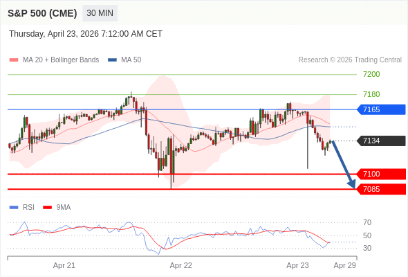 在 7165 之下,看跌,目标价位为 7100 ,然后为 7085 。