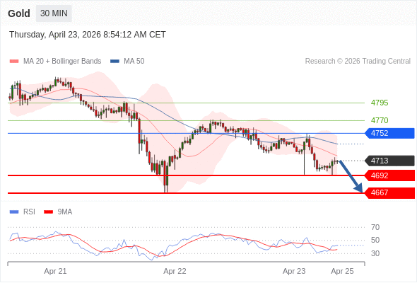 在 4752 之下,看跌,目标价位为 4692 ,然后为 4667 。