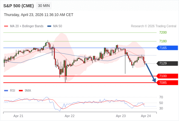 在 7165 之下,看跌,目标价位为 7100 ,然后为 7085 。