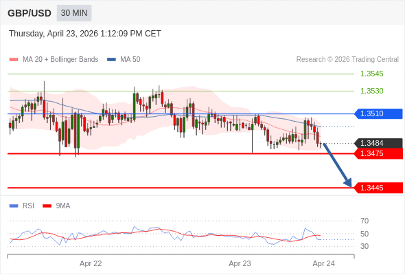 在 1.3510 之下,看跌,目标价位为 1.3475 ,然后为 1.3445 。