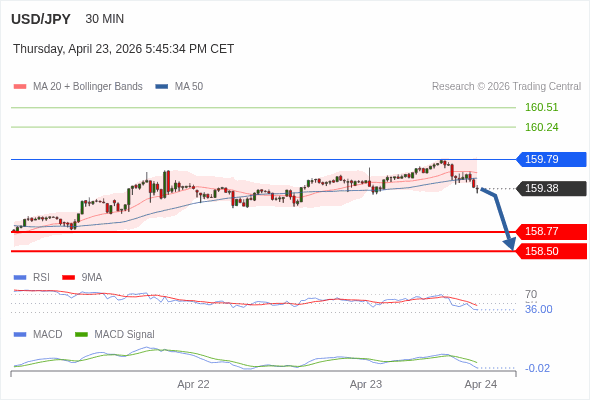 美元/日元 当日内 : 看跌,在 159.79 之下。