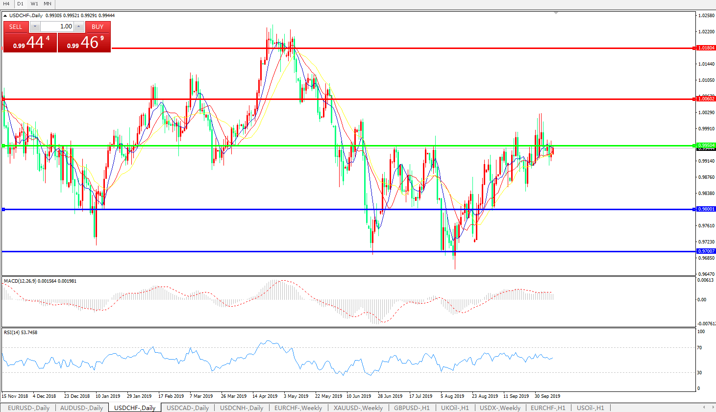交易策略:0.9950下方看跌,目标0.9800、0.9700