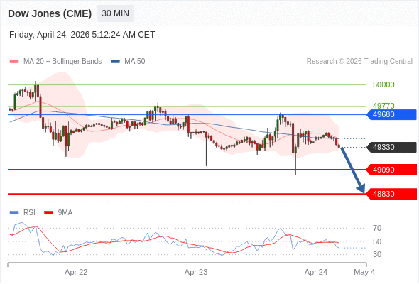 在 49680 之下,看跌,目标价位为 49090 ,然后为 48830 。