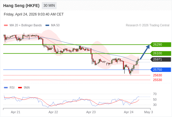 在 25750 之上,看涨,目标价位为 26100 ,然后为 26290 。