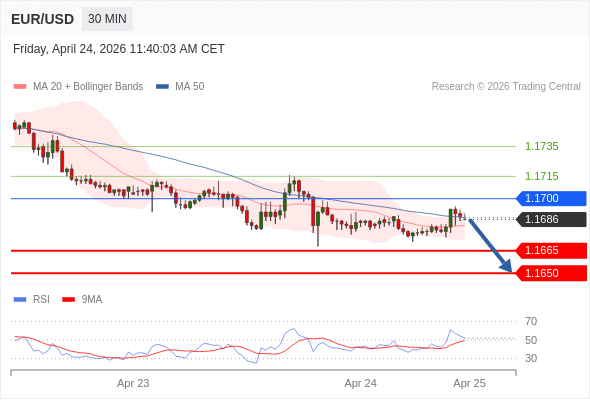 交易策略: 在 1.1700 之下,看跌,目标价位为 1.1665 ,然后为 1.1650 。
