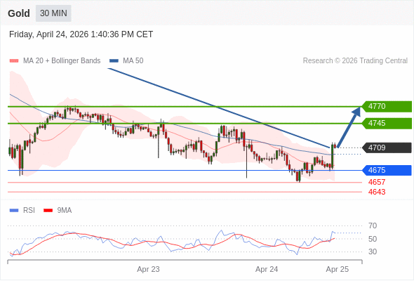 在 4675 之上,看涨,目标价位为 4745 ,然后为 4770 。