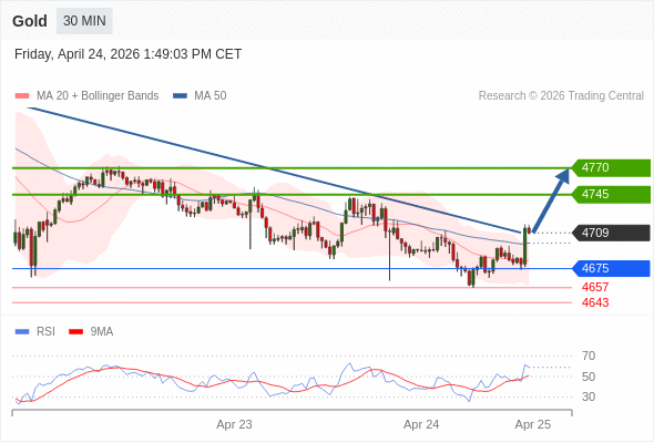 在 4675 之上,看涨,目标价位为 4745 ,然后为 4770 。