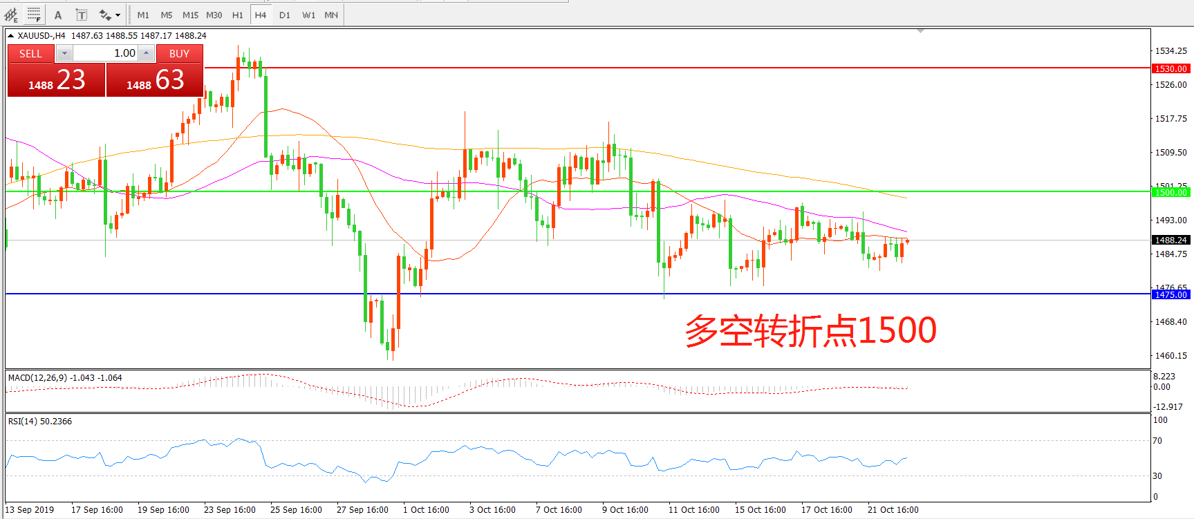 周二(10月22日)盘中,现货金价维持窄幅震荡的走势,基本维持在1490美元下方震荡, 英国脱欧的乐观情绪给金价施加压力,但地缘政治风险和美联储降息等因素仍为市场提供有效支撑。市场缺乏有影响的时间,仍需等待新的方向指引。本周末下周初市场就将迎来印度排灯节,这是对黄金需求极为重要的节日,据估计,印度排灯节的黄金需求差不多占到该国全年黄金需求的五分之一,在节日即将到来的情况下,该国实物黄金需求可能会增加20%至30%。