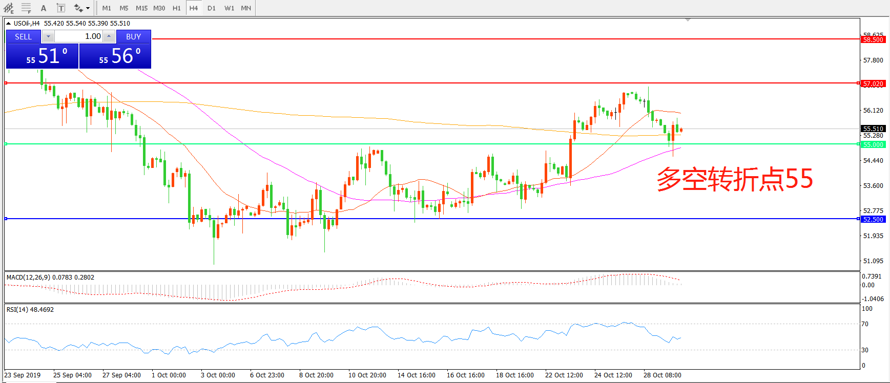 多空转折点:55.00