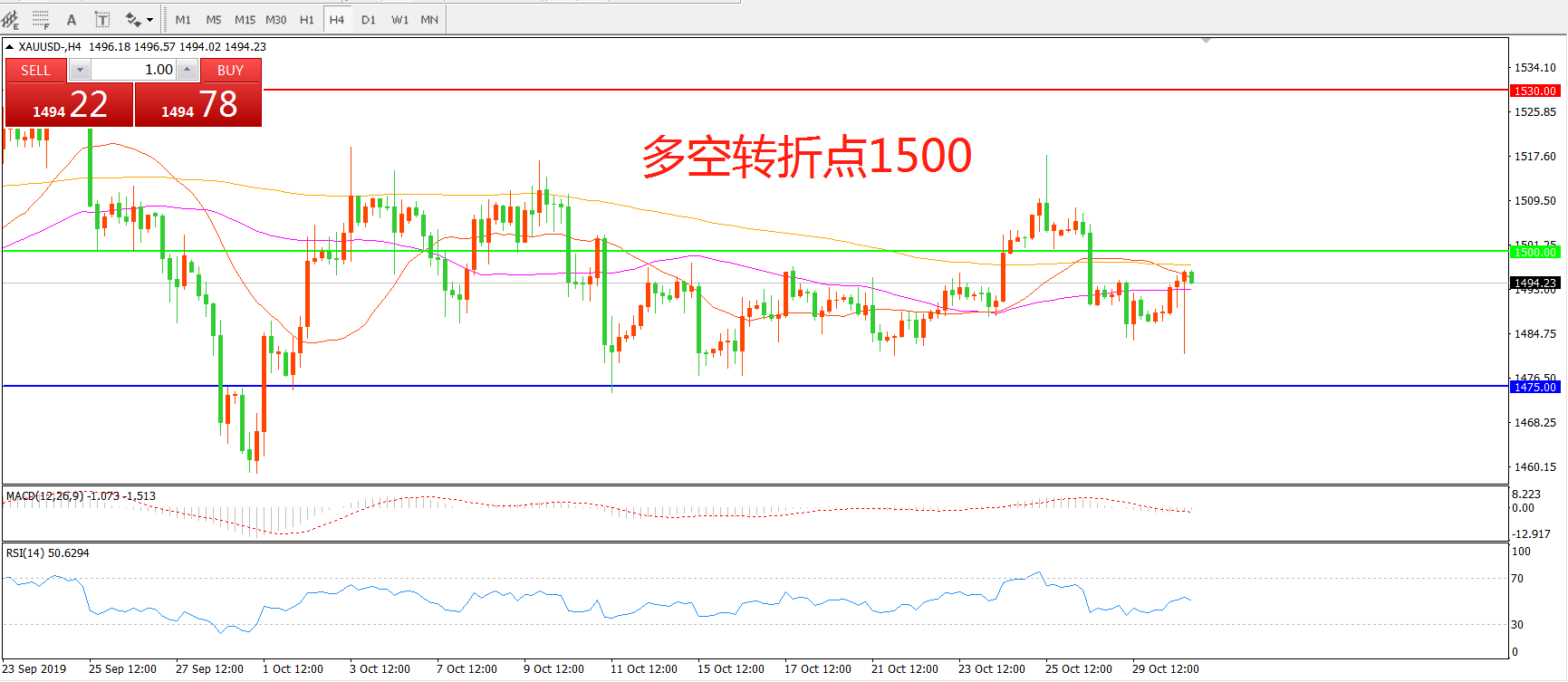 多空转折点:1500.00