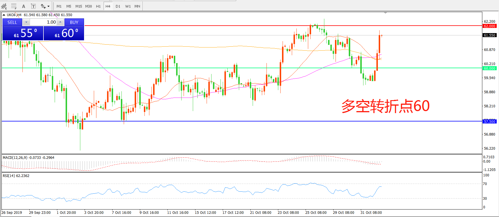 多空转折点:60.00