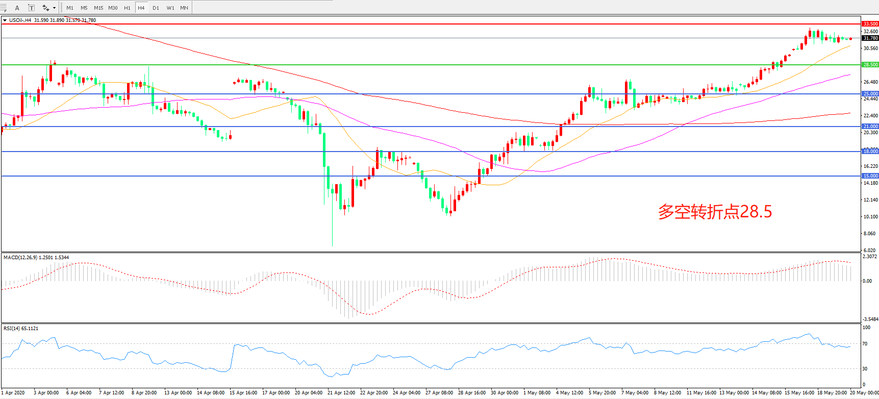 周三(5月20日)凌晨,美国石油协会公布的数据显示,当周API原油库存减少480万桶,好于预期,成品油库存差强人意,精炼油库存大幅增加。数据公布后,美油短线走高后回落,收报31.73美元/桶,近期油价一路高歌猛进,晚间的EIA数据有望成为行情的“助燃剂”。