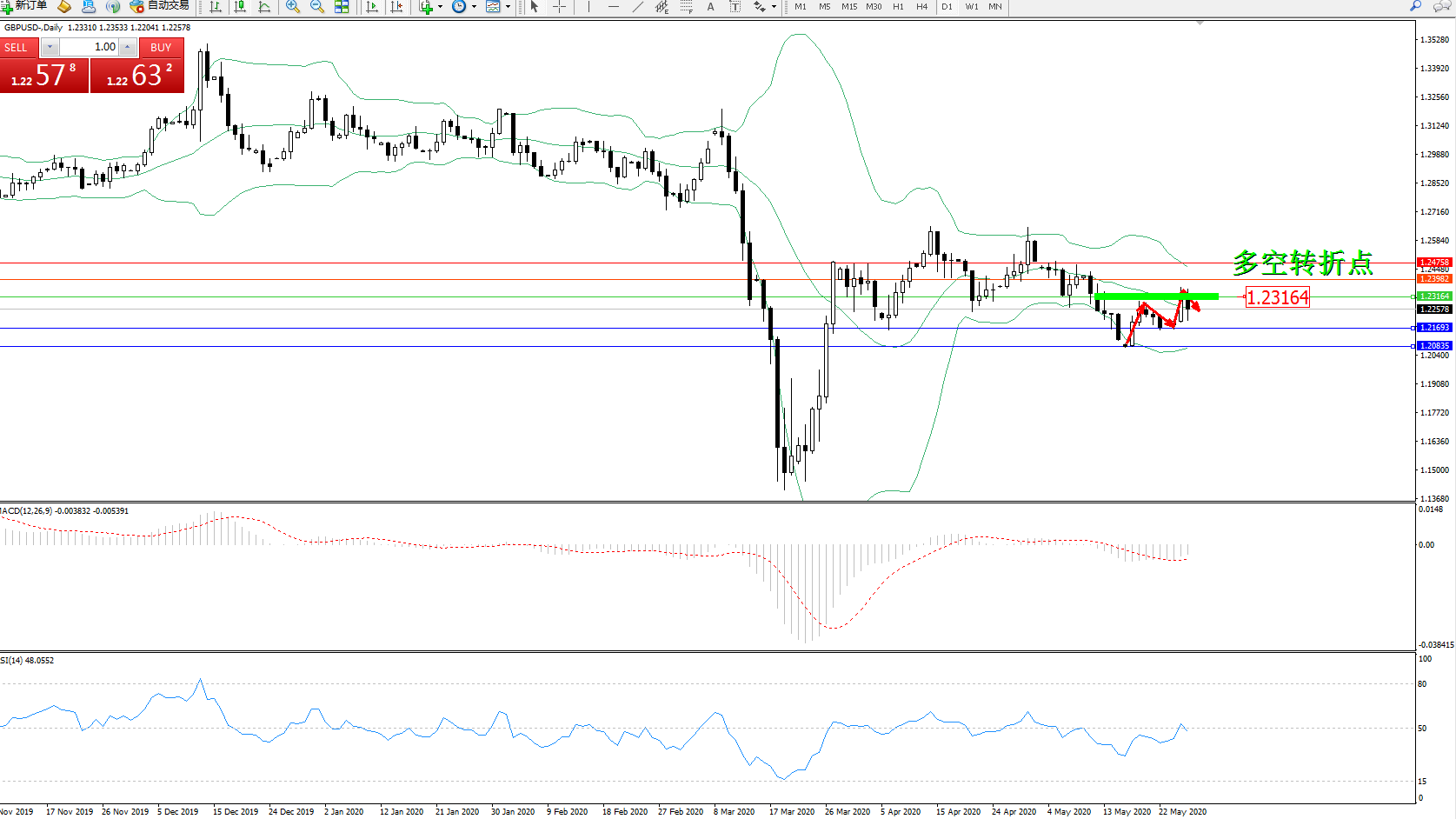 交易策略:1.23164下方看跌,目标1.216931.20835