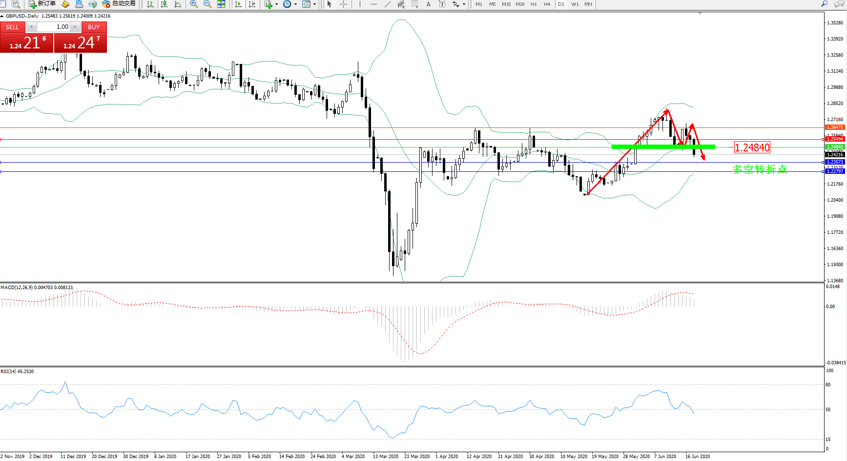 交易策略:1.24840下方看跌,目标1.235731.22797