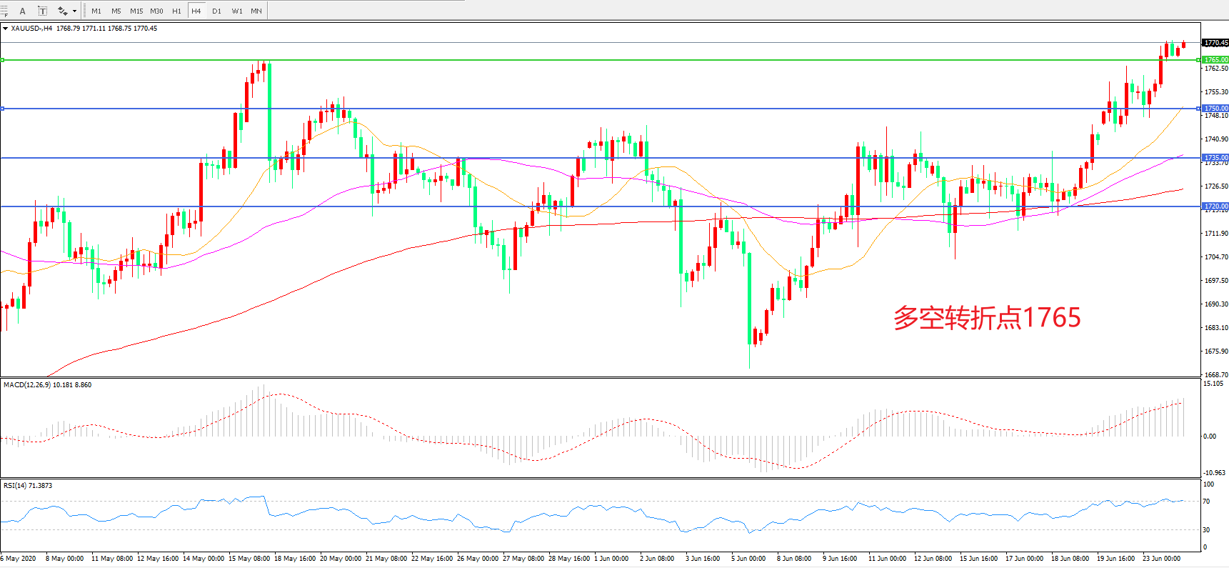 交易策略:在1765.00之上看涨,目标1780.00 1800.00