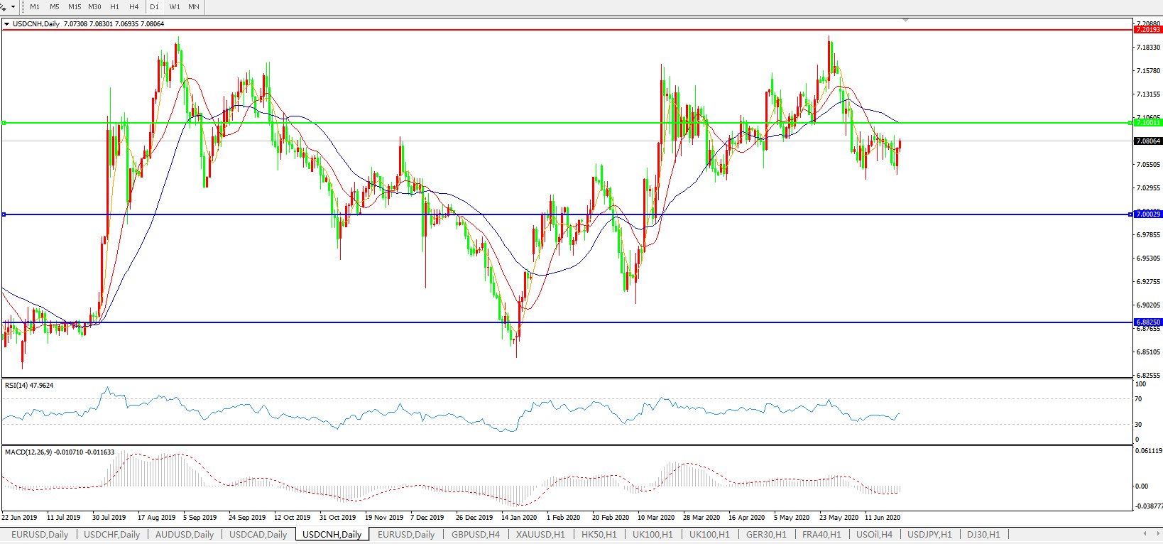 交易策略: 在7.1000之下,看跌,目标价位为7.0000,然后为6.8820。
