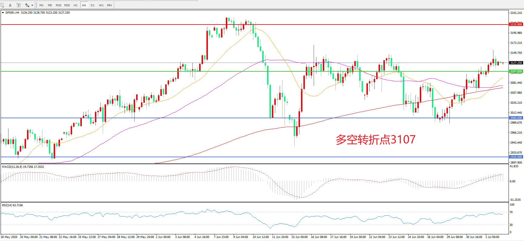 交易策略:在3000.00之上看涨,目标3107.00 3215.00