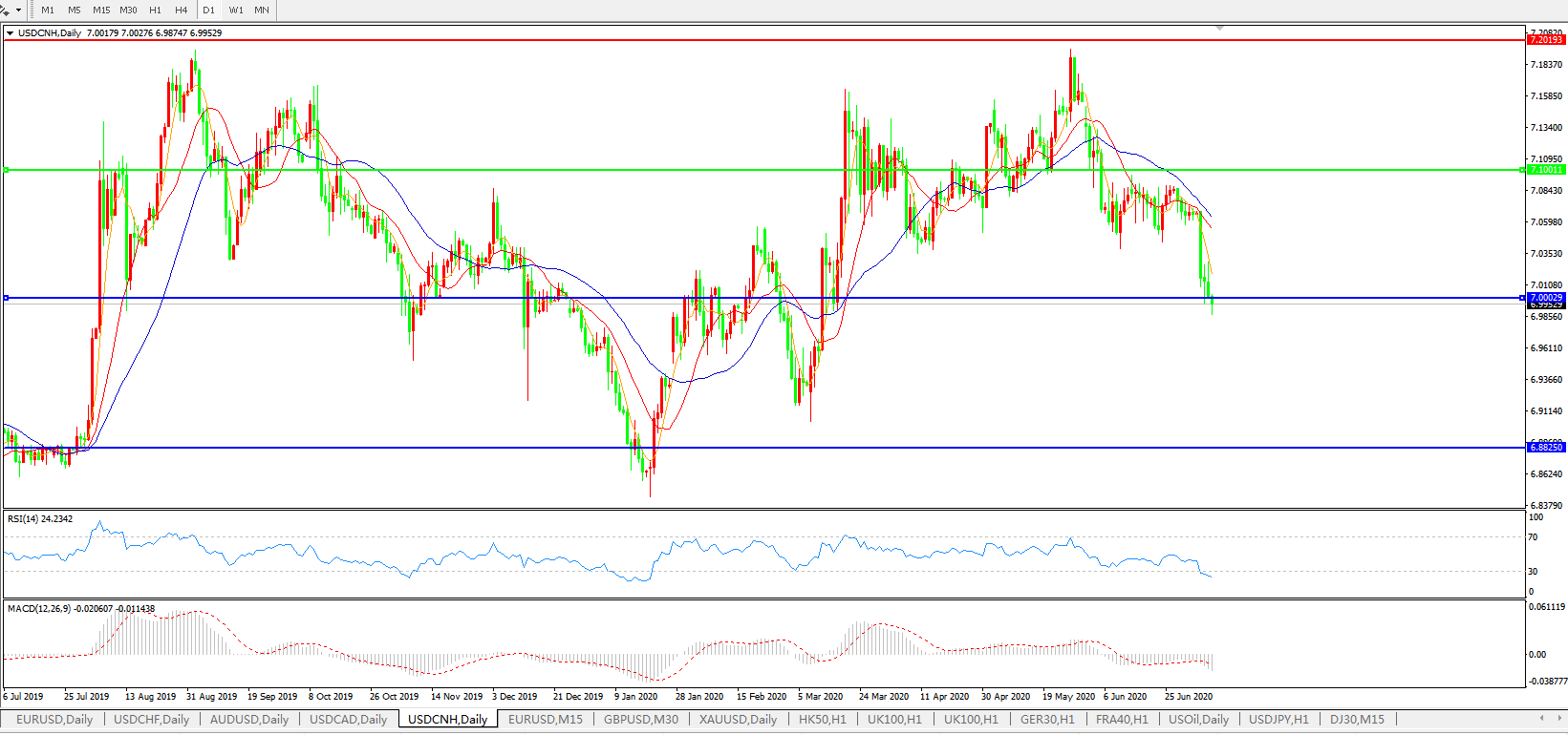 美元兑人民币USDCNH 日线图:
